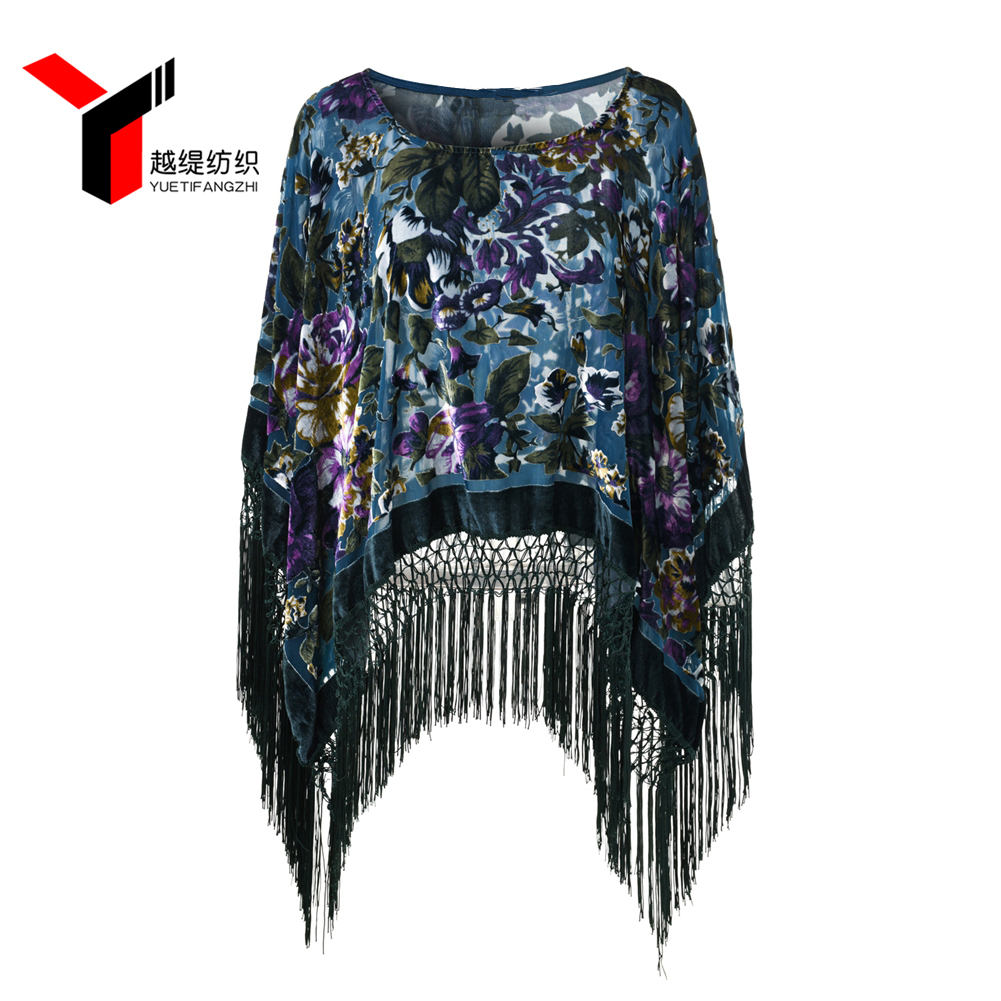 新款爛花絨流蘇披肩淺色款
