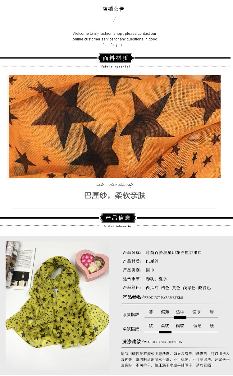 購物車:新款滿天星巴厘紗圍巾橘黃