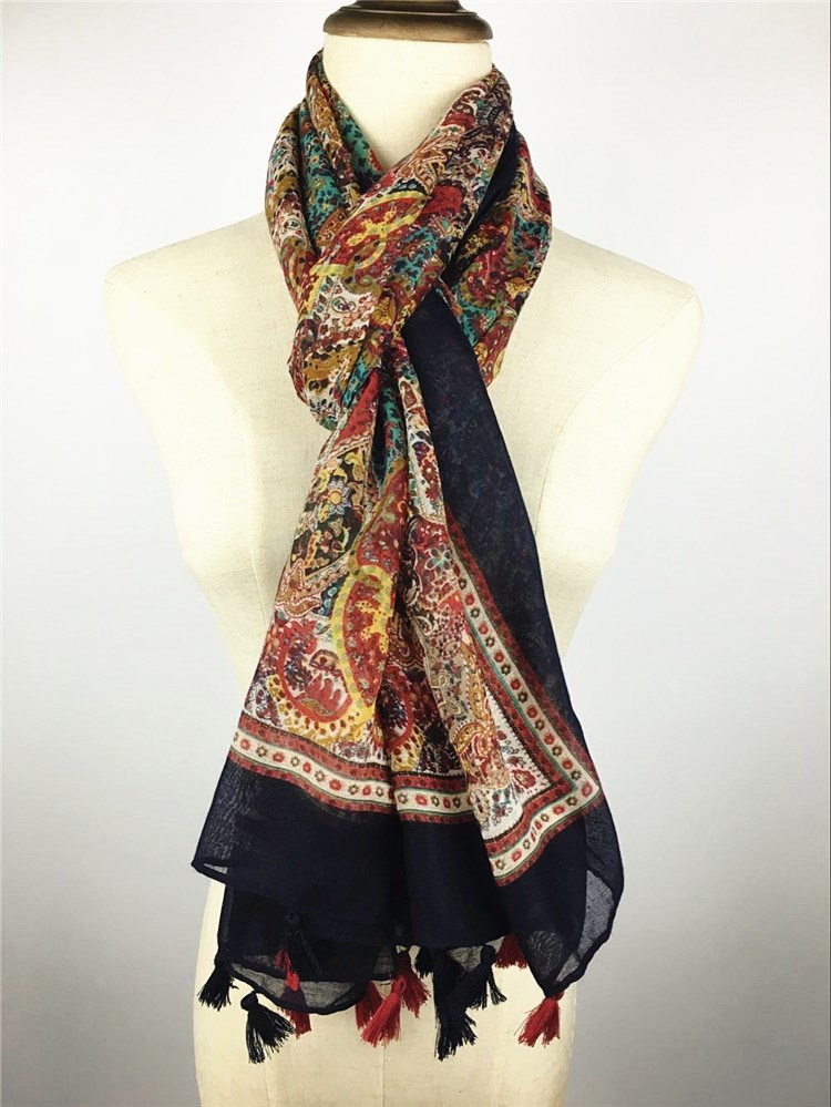 西雅圖黑邊掛須巴厘紗圍巾